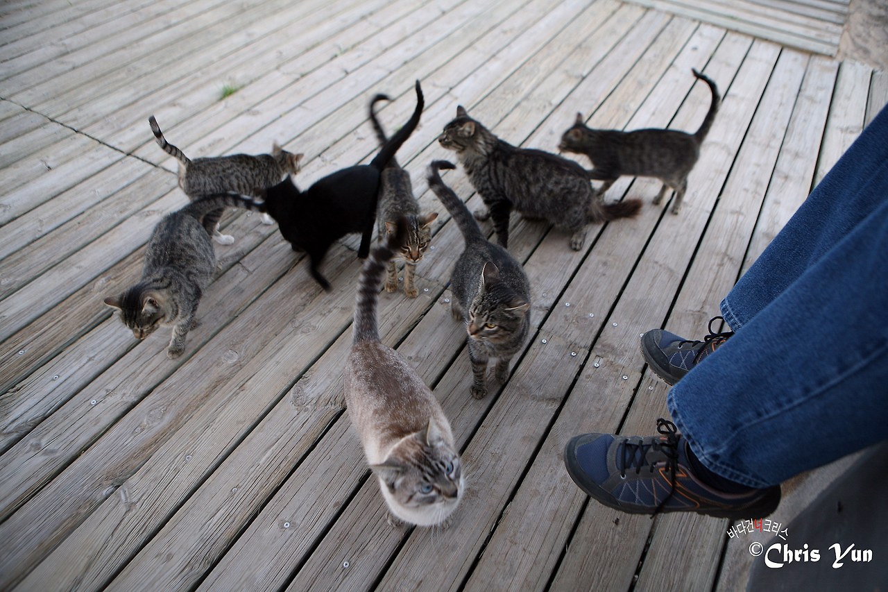 우리가 가방을 챙겨 자리를 떠날 준비를 하면 주변으로 몰려드는 길냥이들...