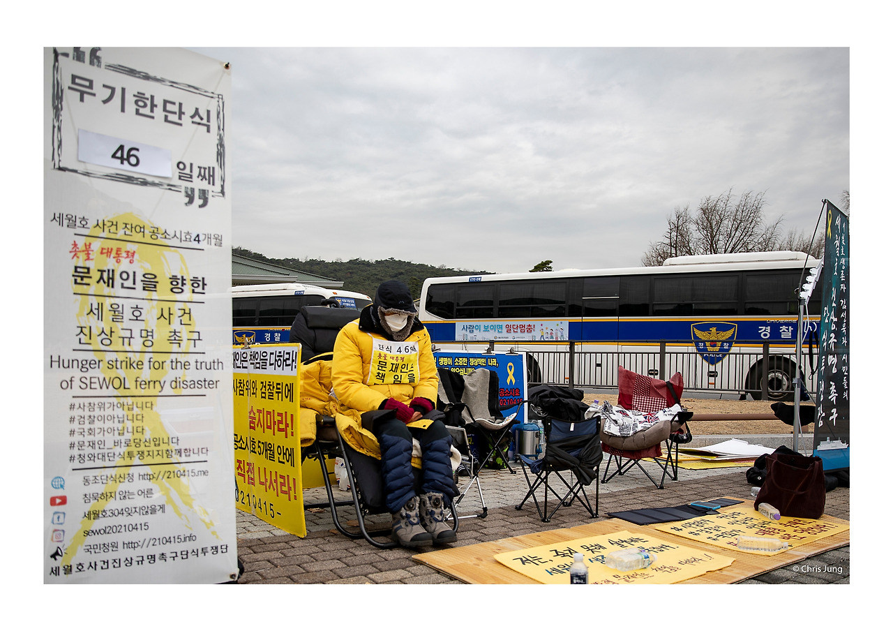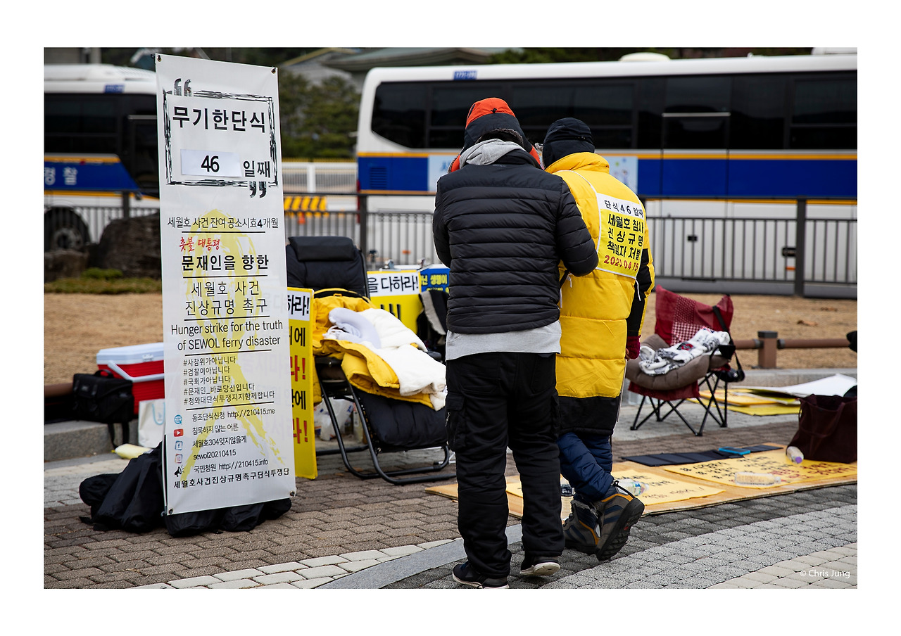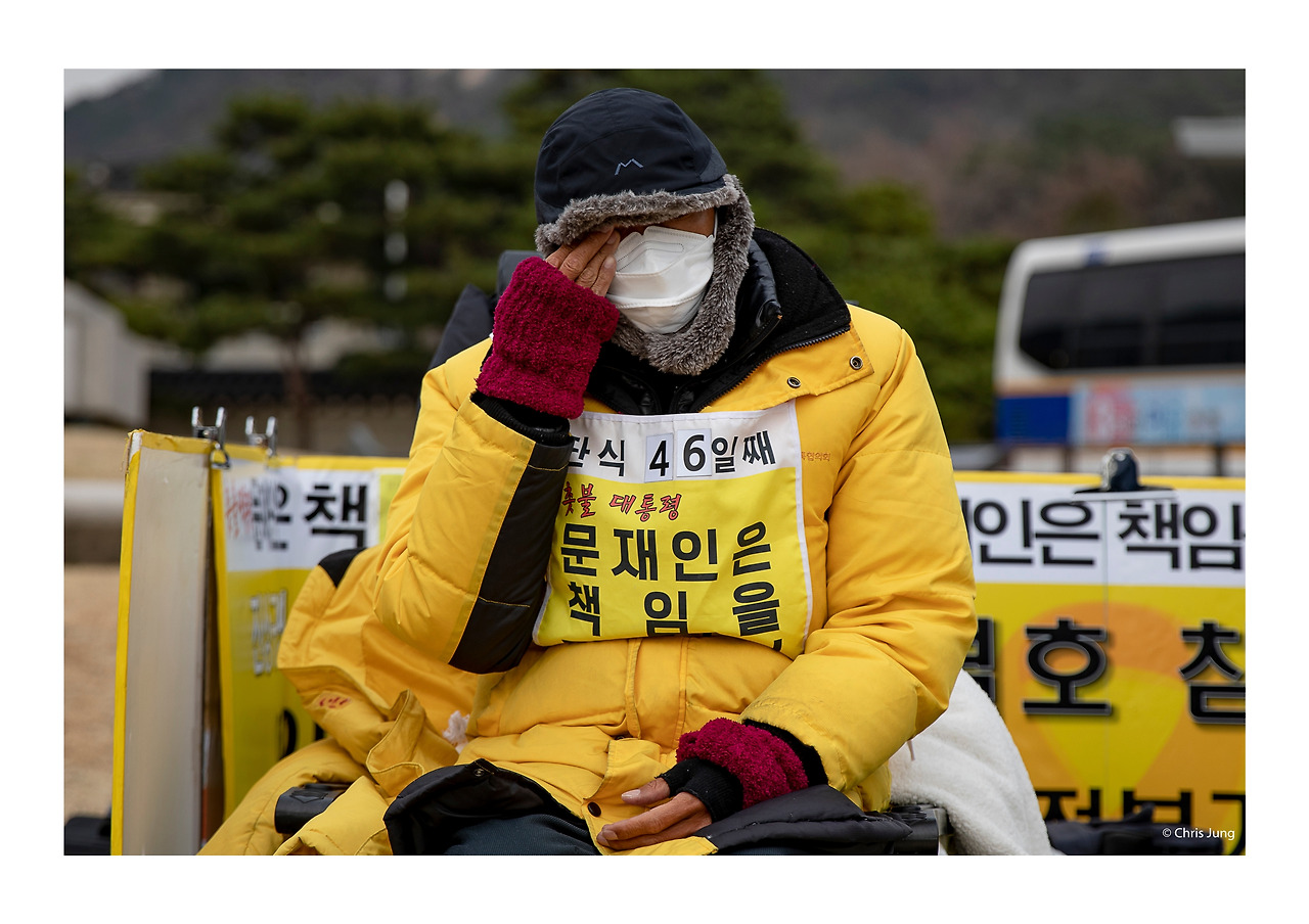 청와대 앞, 한 사람이 46일 동안 곡기를 끊고 울부짖고 있는데 우리 사회는 그를 너무 차가운 곳에 혼자 오래 두고 있다.