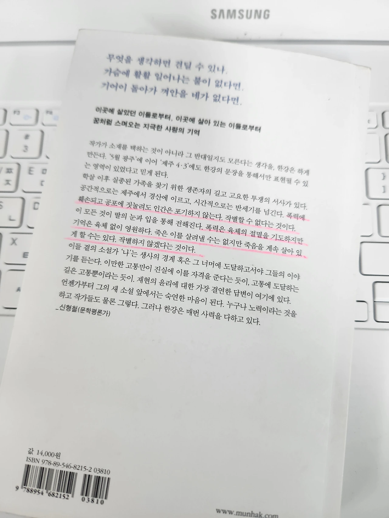 이러한 일련의 문학적 기능에 충실한 또다른 작가로 한강을 들 수 있다. 5 18 민주화 운동을 소재로 각각 6명의 시선으로 사건 당시와 그 이후를 서술한 <소년이 온다>를 들 수 있다. 작가는 광주를 중심으로 역사적 과정보다는 개개인의 고통과 내면에 집중하여 서술해 나간다. 본인의 자전적 요소를 담은 이야기를 쓴 것을 보더라도 유년 시절 겪은 역사적 사건을 재현하는 과정에서 상당한 압박을 받았을 것이나 그녀 특유의 섬세한 내면 묘사로 훌륭히 완성해 낸다. 이런 그녀의 필력은 신작 <작별하지 않는다>에서도 고스란히 잘 드러난다. 제주 4 3 사건을 소재로 하는 이 소설은 역사에 짓밟히고 폭력에 훼손되더라도 끝까지 진실을 밝히고자하는 인물들의 의지를 통해 우리에게 감동을 준다. 수많은 희생자가 있었고, 여전히 고통받는 생존자와 그가족들이 있다. 죽은 자들을 다시 살릴 수는 없는 아픔이나, 죽음이 계속 살아있게는 할 수 있다는 작가의 시각은 제목인 <작별하지 않겠다>는 말로 일축된다. 겨울 눈 내리는 풍경이나, 그 속의 나무들과 같이 공생하는 새, 그림자 등의 소재를 섬세하게 묘사한 장면의 현장감은 탁월하다. 역시나 사건을 직접 경험한 세대의 고통과 그를 지켜보는 이와 사회화하고자 하는 이들의 내면적 고통을 아프게 서술하고 있어서 읽는 내내 독자로서도 아팠다.