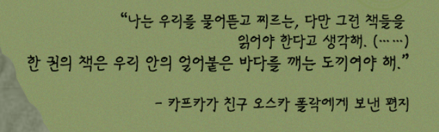 얼어붙은 바다를 깰 수 있는 도끼 같은 책과 조우하기를.