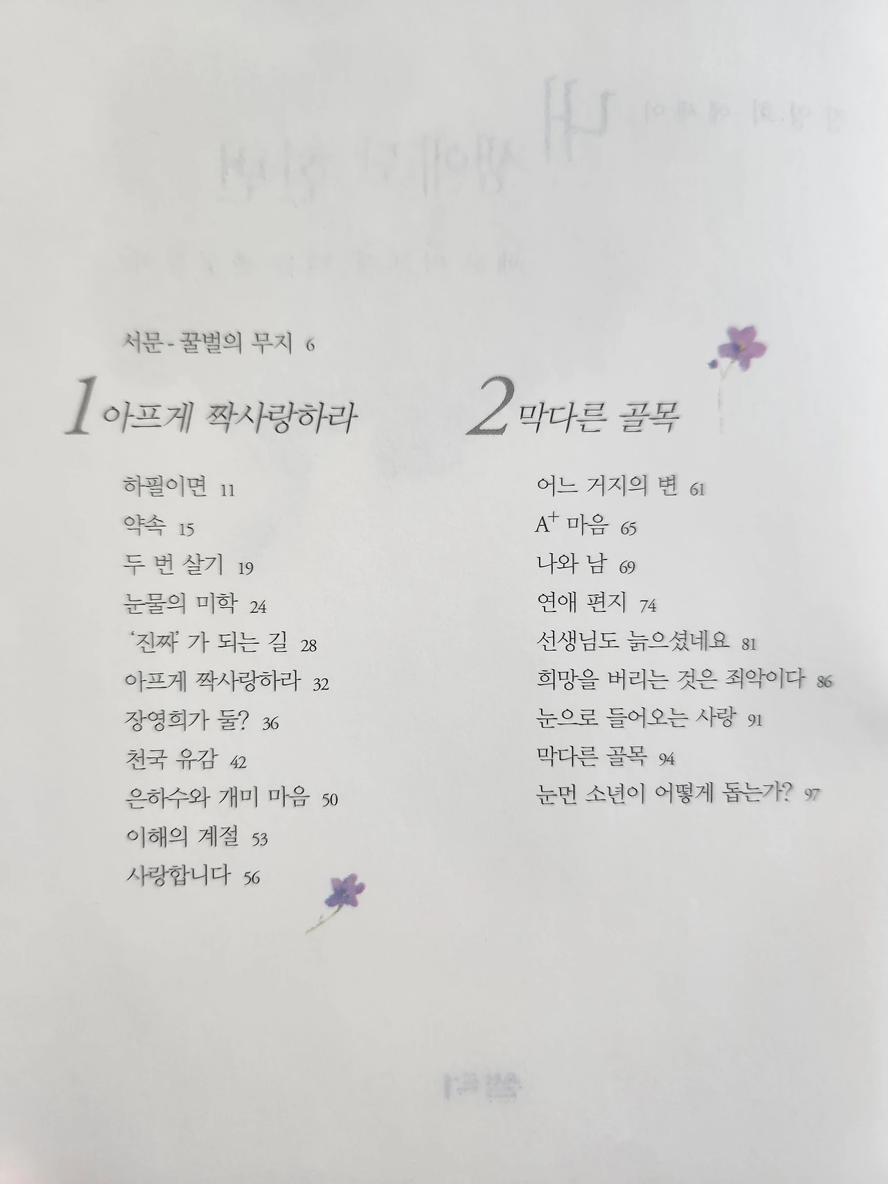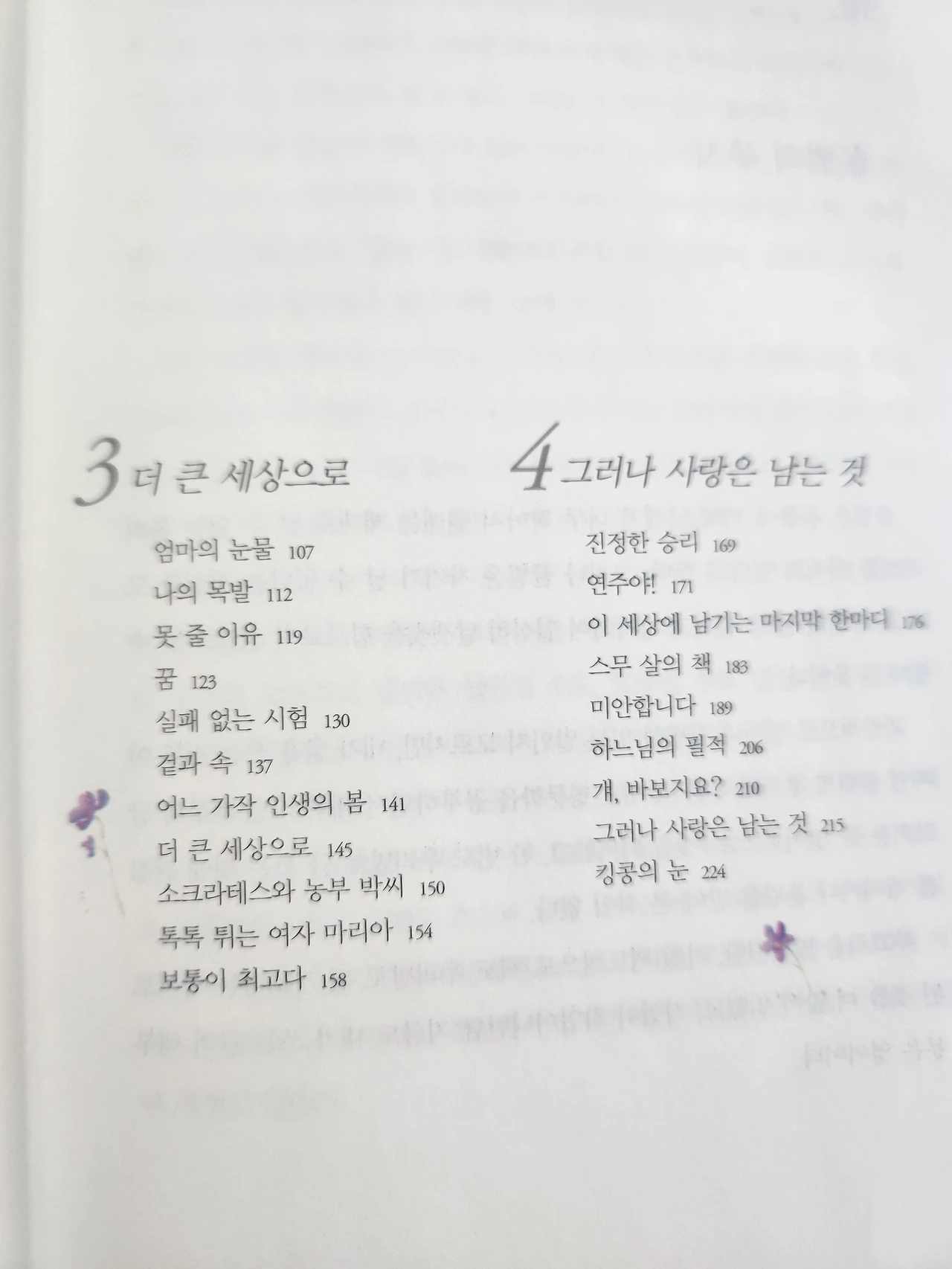 각자의 생은 누구라도 선택하지 않은 삶의 시작일지나, 현재 어떠한 모습이든 그 속에서 사랑을 찾고 희망을 노래하며 삶을 사랑하는 작가의 긍정 메시지가 참 좋다. 작가처럼 소박하나 바르게 살고 사랑한다면 한평생 잘 살았다 싶을 것 같다.