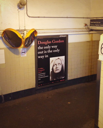 글라스 고든의 회고전 The Only Way Out is the Only Way In 을 광고하는 빌보드가 나붙었다. 유쾌한 청소년들, 혹은 장난기 많은 시민들은 일주일이 채 지나기 전에 모든 포스터에 검은 눈동자 한 쌍씩을 선물 했다. 고든은 그의 작업활동이 일상 생활에서 사물을 “찍고” “발견하는” 그의 아주 개인적인 취미에서 출발했다는 점에서 예술은 그에게 전략적인 행위가 아니라 단순히 살아가는 것과 같다고 말한다. 포스터 만큼이나 행인들을 동요시킬 만큼 자극적인 이미지, 공포, 그리고 선악, 명암, 삶과 죽음, 현실과 비현실 등 상반되는 개념들과 그것들의 모호함은 작품의 중요한 구성요소였다. 고든이 재발견한 영화나 팝컬쳐, 혹은 고전문화의 이미지들은 단순하지만 위트있는 연출적 장치들로 단숨에 집중하게 만들었다.