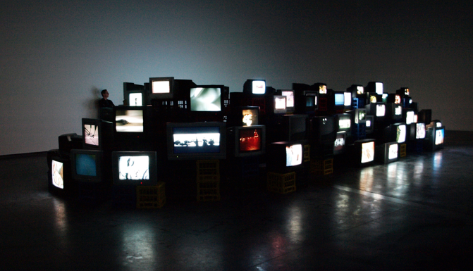 그 완벽한 어둠을 더욱 공포스럽게 만드는 것은 벽 너머에서 들려오는 음산한 소리였다. 5미터 이상의 높은 천장을 가진, 사다리꼴로 좁아지는 방 안에서 CRT형식의 텔레비전 수 십대가 의미를 알 수 없는 행위를 반복하는 비디오 클립들을 재생한다. 이들이 한 데 모여 만드는 충격적인 풍경도 그렇지만, 세상의 것이 아닌 듯한 중첩된 청각 효과도 작품의 존재감에 무게를 더한다. 작가는 관객들이 이들을 단일한 덩어리로 인식하기를 바란다고 말했다. 그에게 각각의 모니터는 서로를 침범하고 상호영향을 받는 현실-가상세계를 나타내는 듯 했다.