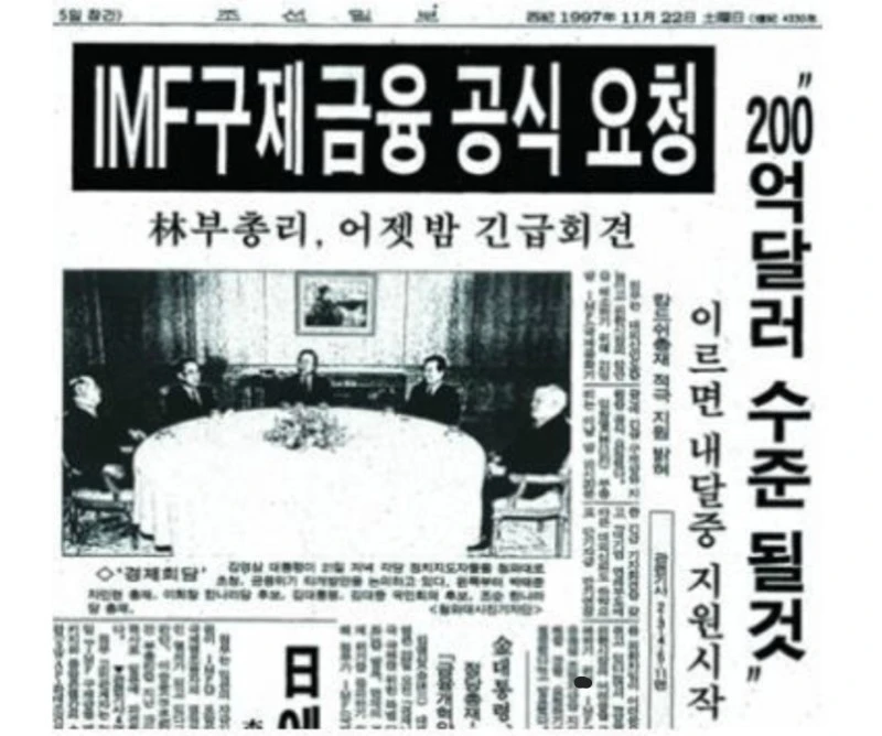 우리나라가 경제 선진국 대열을 바라보며 겉보기엔 화려한 호황세를 누리는 것처럼 보였으나 단기외화 차입이 급증하면서 외채구조가 급격히 악화되었고 잘못된 외환보유고 관리정책(3개월치 수입대금에 맞춘)을 유지한 데다 외환시장에서 환율이 급등하자 이를 방어하기 위해 달러자금을 허비하게 된 결과로 1997년 12월중 환율이 최고점 1,962원으로 연초대비 두배 이상으로 뛰었고 외환보유고는 한 때 39억달러까지 감소한 그야말로 ‘국가부도 위기’를 맞게 되었다.