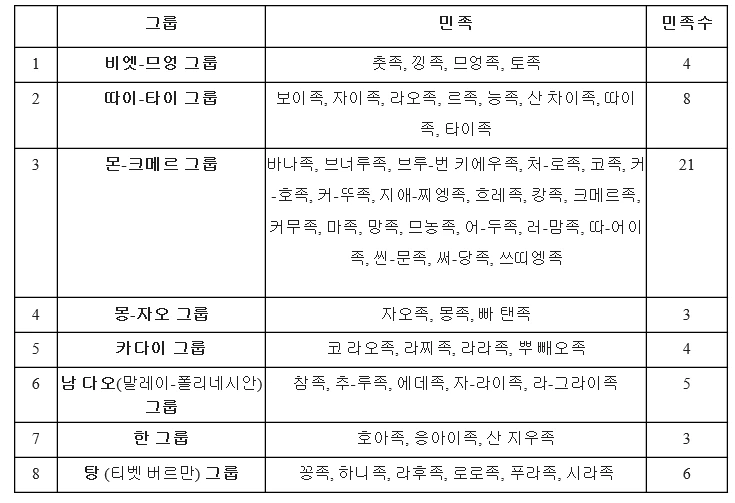 베트남 민족 언어권별 분류(출처: http://egloos.zum.com/butandorso/v/2754134)