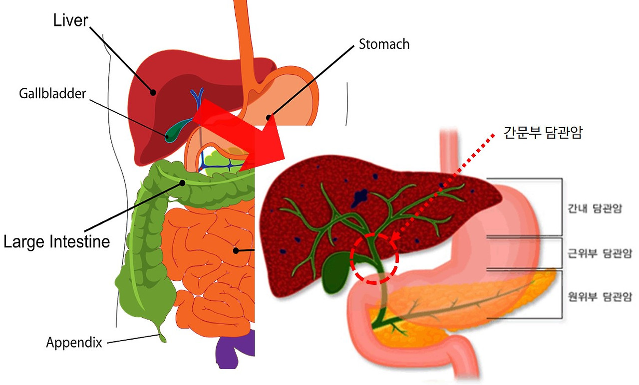 1) #간내 담관암(간 내부), 2) #간문부 담관암(간 연결부), 3) #원위부 담관암(외부)