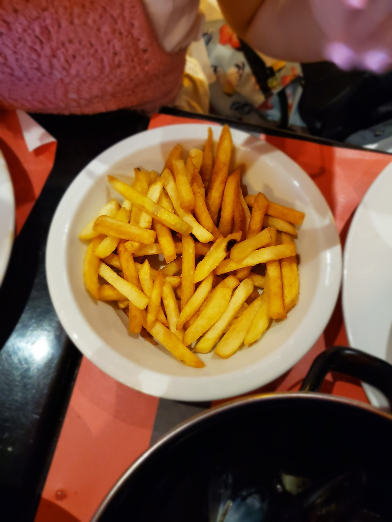 2) 그래서 말인데, 홍합탕 (Moules et Frites)을 먹을 때는 감자튀김 > 홍합 > 화이트 와인 순으로 먹어야 맛있다.