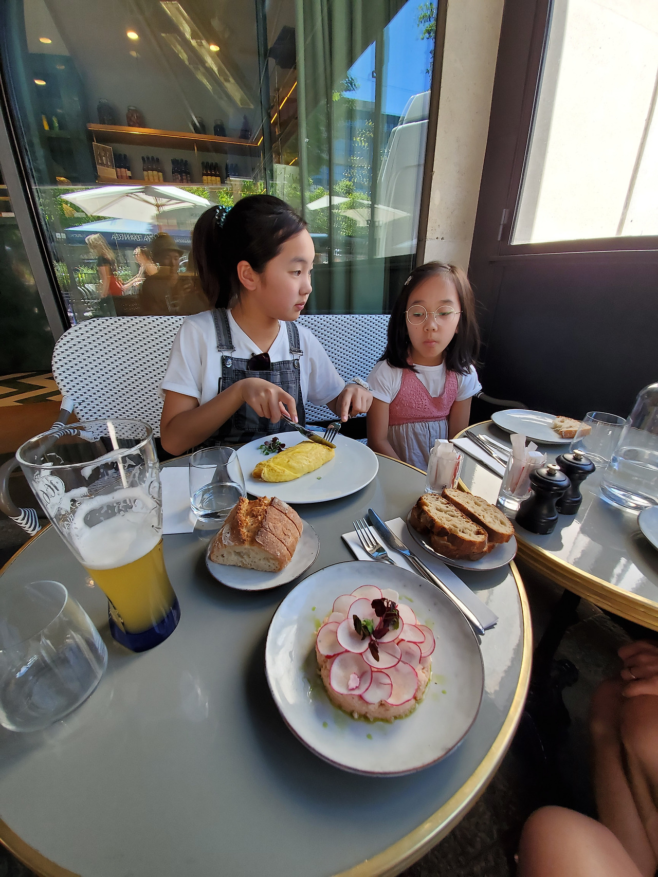 시차 적응이 잘 된 건지 그 반대인지는 몰라도 일곱 시쯤 벌떡 일어났습니다. 상쾌한 파리에서의 첫 아침!이라 운동이 하고 싶어져, 둘째 (약 30킬로)를 어깨에 목마 태우고 스쿼트 100개, 윗몸일으키기 등 코어 150개, 팔 굽혀 펴기 약 120개로 아침을 시작했죠. (다섯 세트로 나눠서)