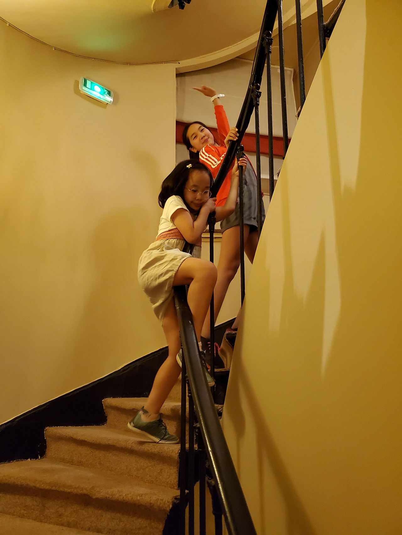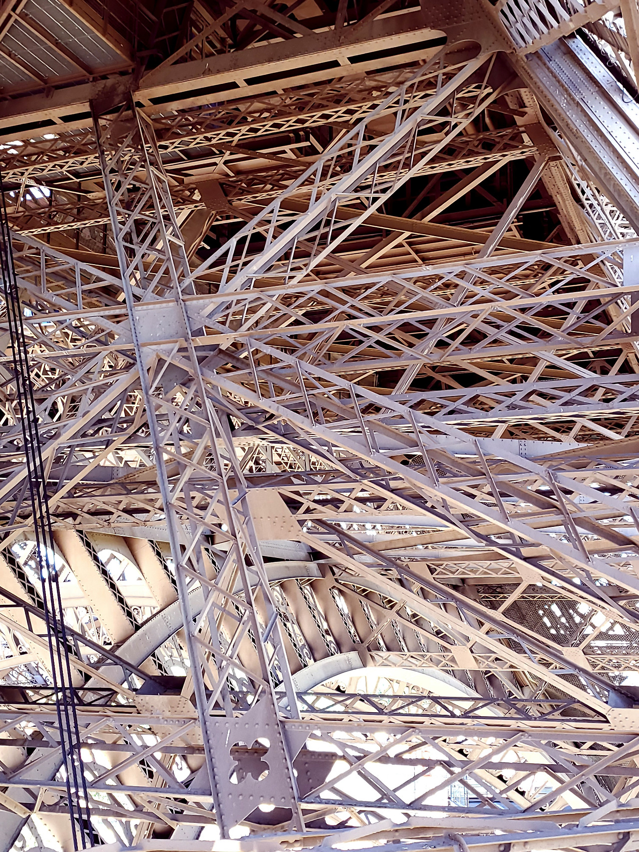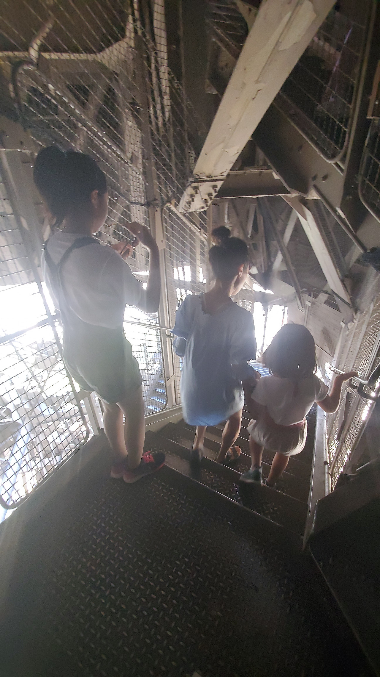 내려오는 길은 2층부터 계단을 통할 수 있습니다. 130년 전에 한 땀 한 땀 끼워 놓은 볼트와 너트를 가까이서 관찰할 수 있어 아무래도 엘리베이터로 내려오는 것보다는 더 나았습니다. 내려오는 중간중간에 에펠탑에 관한 재미있는 이야기들을 보는 재미도 쏠쏠합니다. 에펠탑이 원래는 약 20년 정도만 쓰고 해체할 계획으로 만들어진 건데 130년째 유지되고 있다는 사실이 가장 기억에 남습니다.