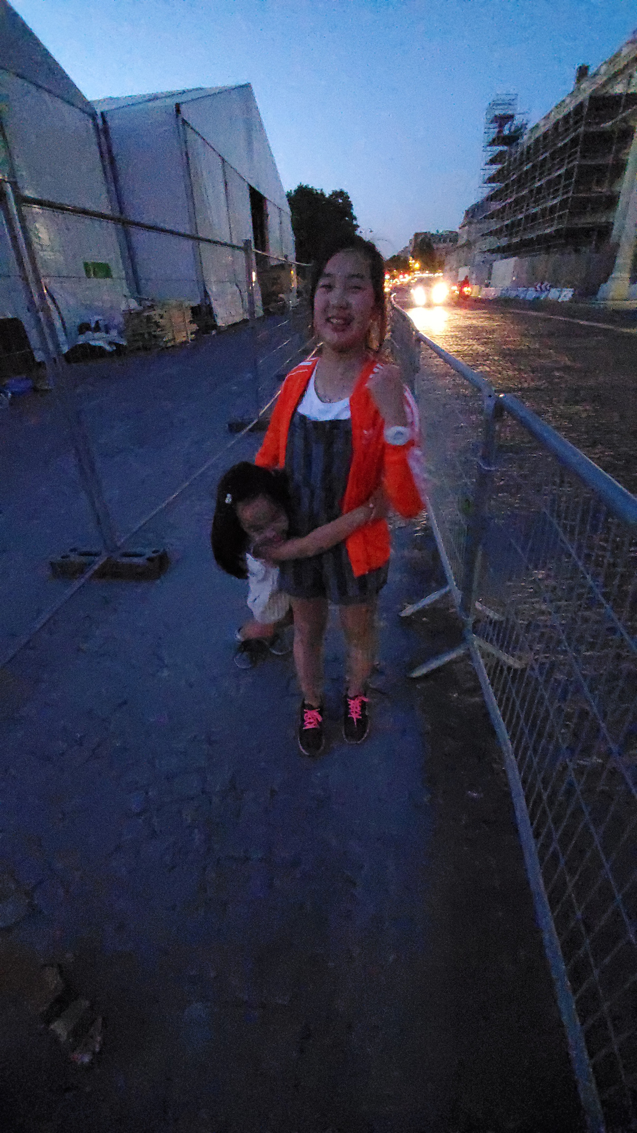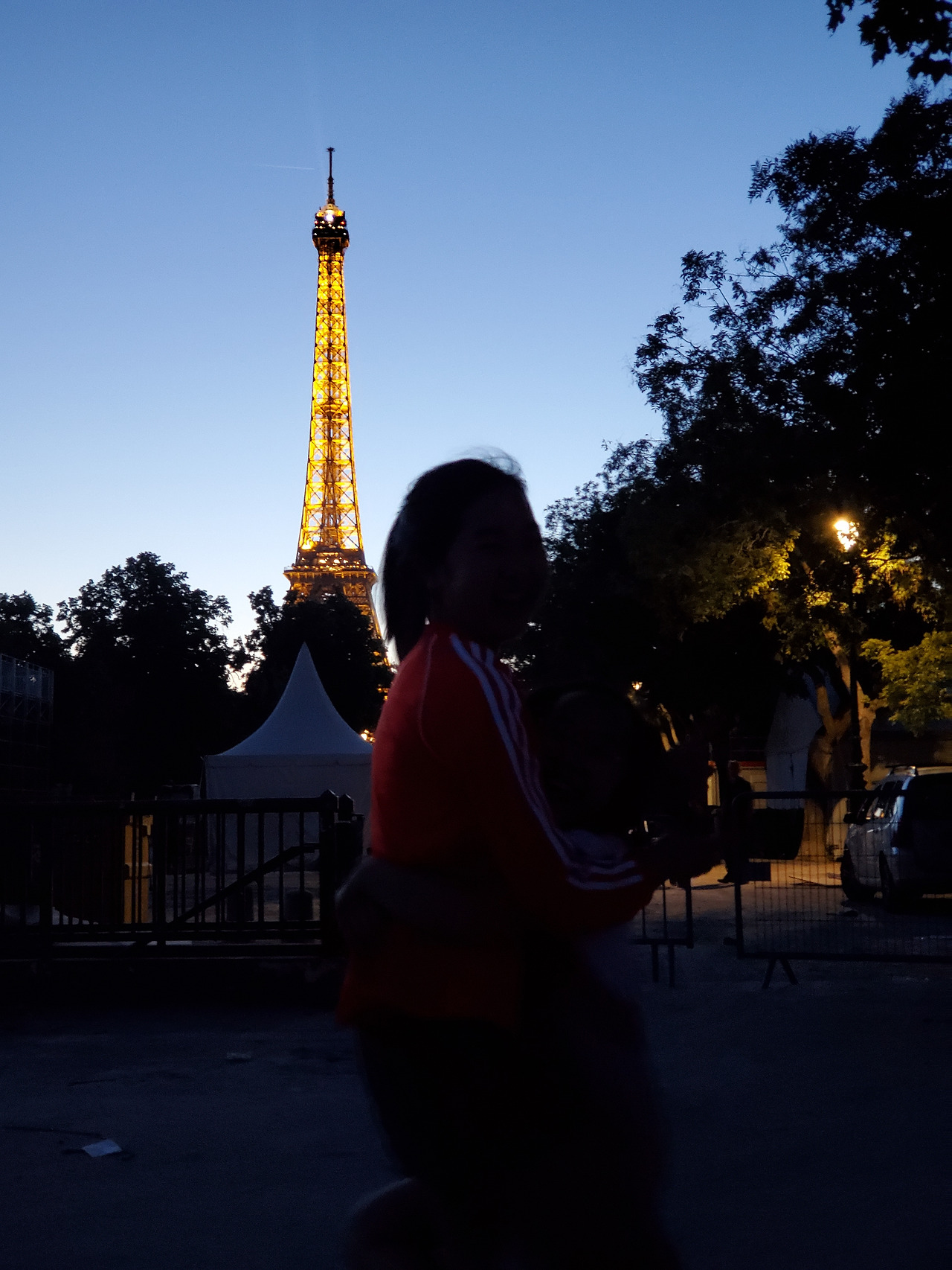 지친 하루가 먹는 즐거움으로 생기를 되찾았습니다. 걸어 돌아가는 길에 밤의 에펠탑이 보이고, 그런 것에는 전혀 상관없는 아이들이 장난치느라 정신이 없습니다.