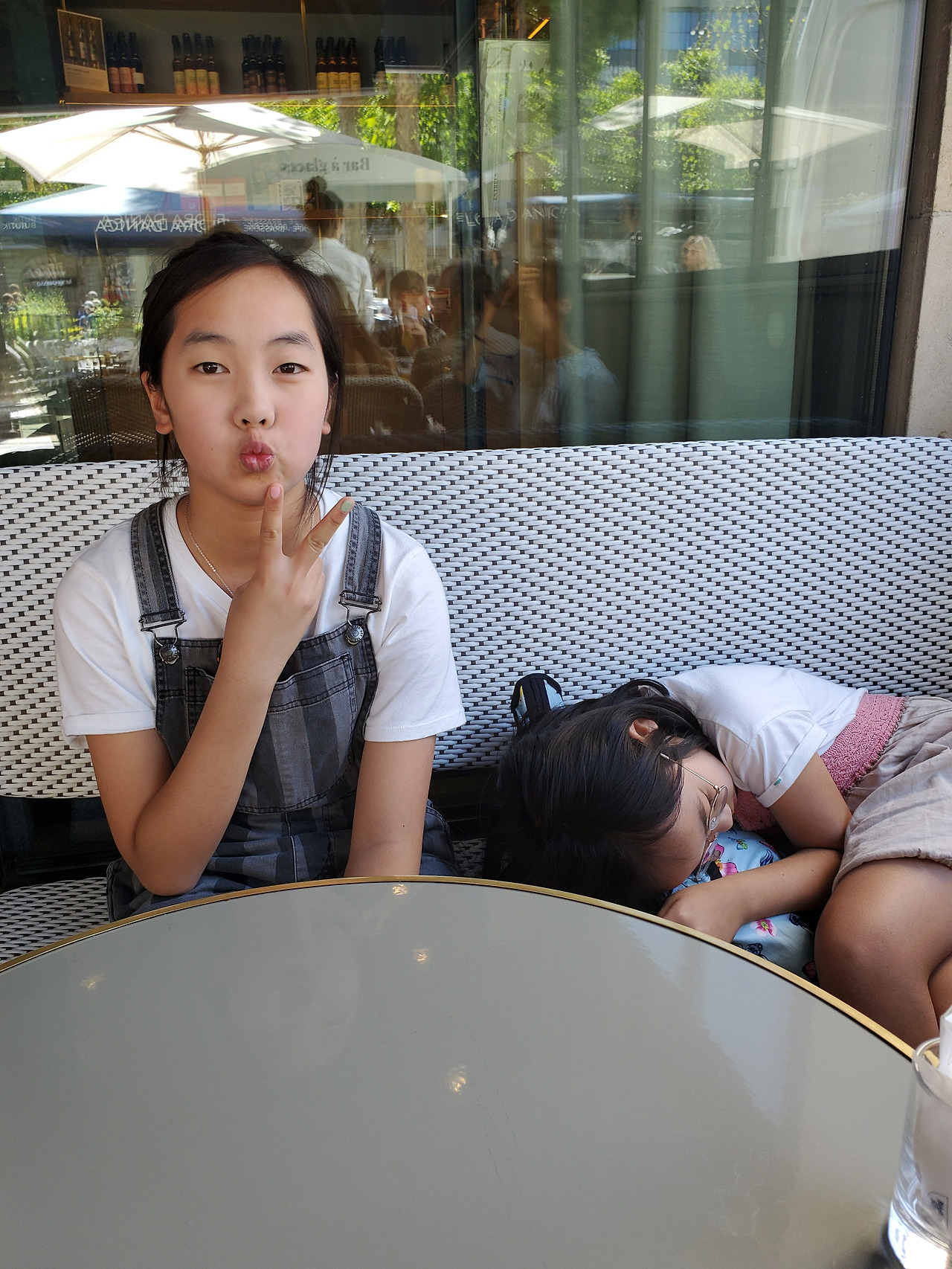 결국 마지막으로 구경하러 들린 Louis Vuitton 매장에서는 한쪽 의자에 앉아 둘째를 무릎에 앉혀 놓고 둘이 신나게 상모를 돌렸습니다. 딱 한눈에 보기에도 구매의욕이 0인 손님 둘이 가게 한쪽 켠에서 신나게 졸고 있는 겁니다. 매장 내 에스컬레이터 옆에 서서 안내하는 한 아리따운 금발의 여직원과 여러 번 눈이 마주쳤지만, 어쩔 수 없었습니다. 눈길 한 번 줬다 미소 지었다 고개 한 번 뒤로 꺾었다를 반복했습니다.