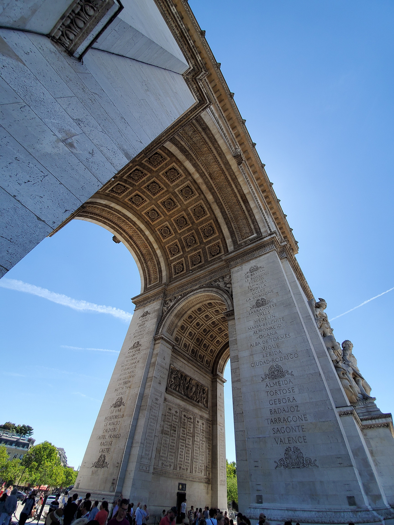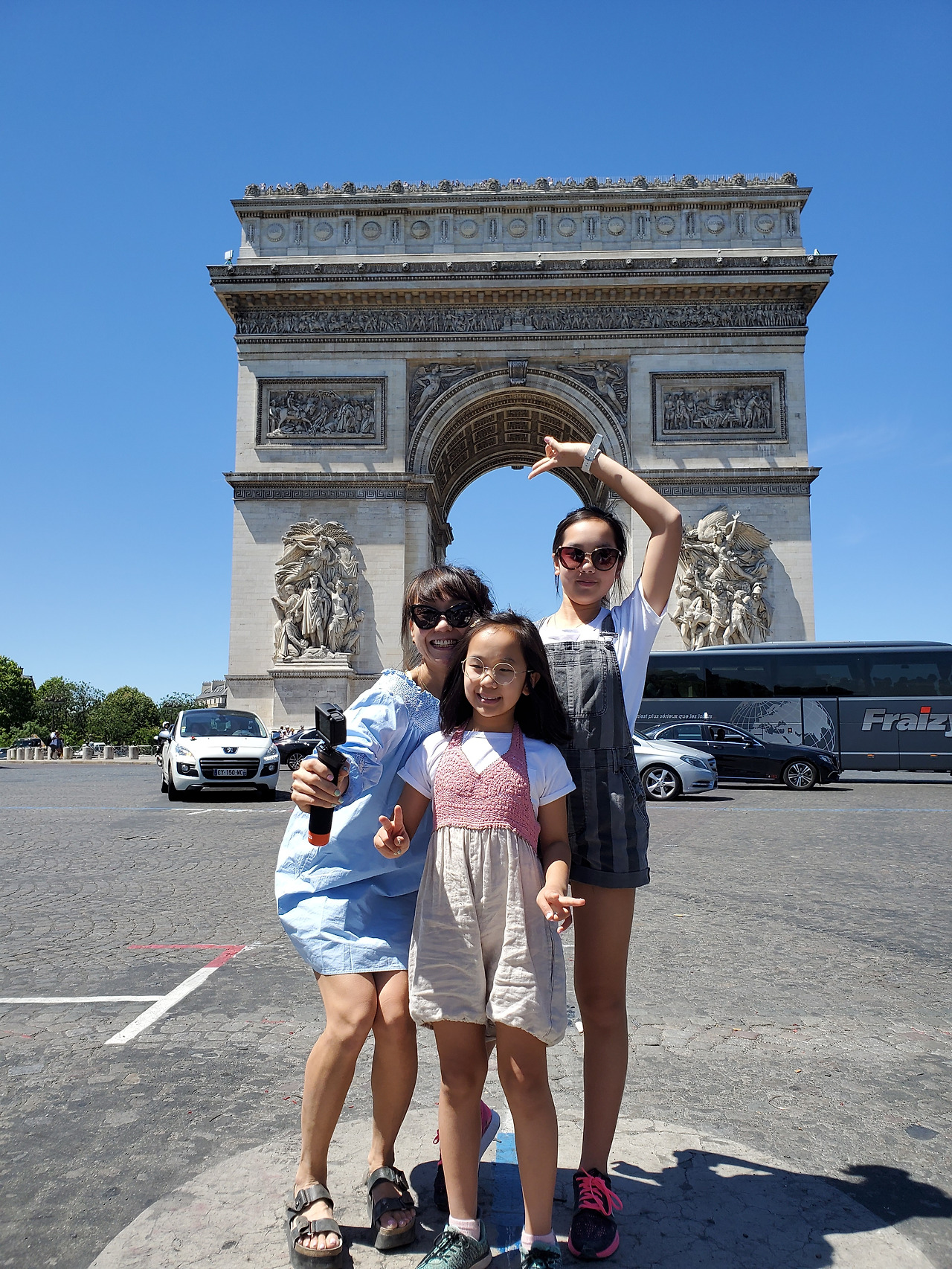 에펠탑을 나와 (줄 서는 것까지 총 두 시간 반이나 썼다는 게 좀 아까웠습니다) 개선문으로 향했습니다. 까르네 t+ 30장을 샀는데, 파리는 지하철도 좋지만 버스가 아무래도 편리하고 재미있습니다. 개선문 앞 샹젤리제 거리를 가로지르는 신호등 중간에 빠져나와 아래와 같이 사진을 찍을 수도 있습니다. 개선문 정 중앙에서 찍을 수 있기 때문에 인기가 많아 종종 사람들이 줄을 서는데, 물론 저처럼 사진이 젬병이면 그렇고 그런 spot이 될 뿐이니, 파이팅.