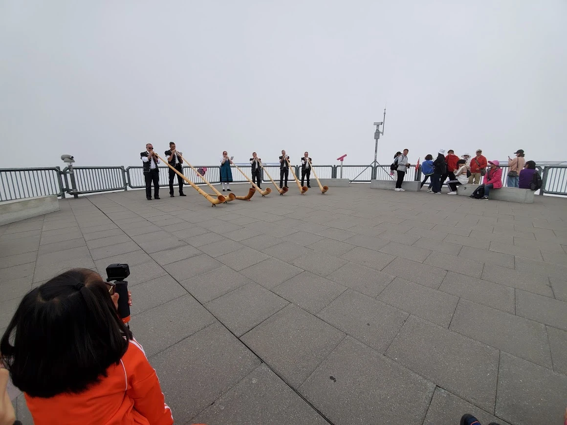 쉴트호른에 올라 알펜호른 (Alpenhorn) 연주를 감상하려니 이미 자리 잡은 뒷사람은 아랑곳 않고 바로 앞을 막아 서 버리는 사람이나 (아내가 한 소리해서 뒤로 보냈다), 한참 연주하고 있는데 아무리 야외라지만 큰 소리로 웃고 떠드는 사람이나, 다 같이 나눠 쓰는 식사 테이블에 음식 쓰레기를 잔뜩 늘어놓고 사라진 사람이나 마찬가지다. 그렇게 다양한 사람이 모여도 그 사이에는 절대적인 무언가가 있다.