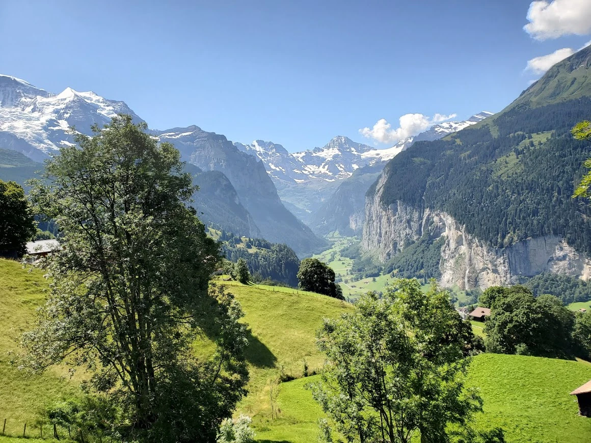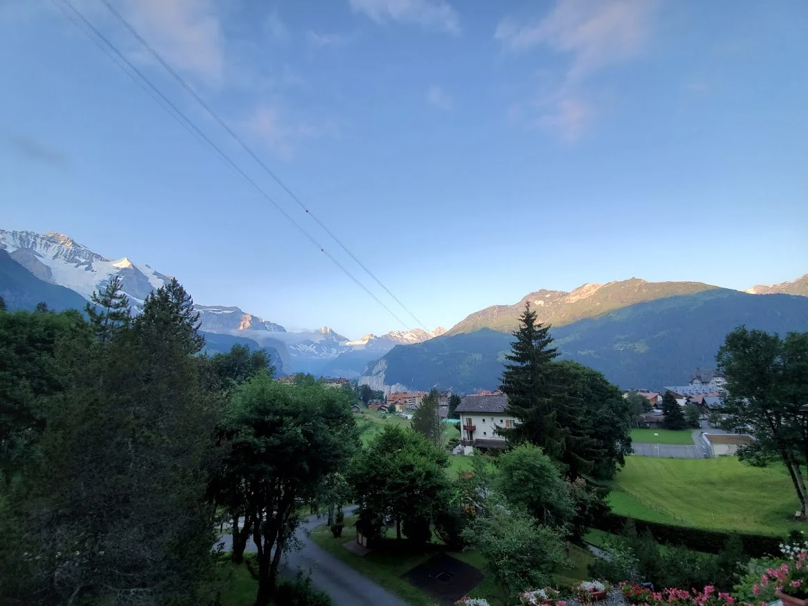 숙소에서 보는 풍경은 아니지만, 위 묘사에는 이 사진(벵겐에서 라우터브루넨 가는 길)이 더 잘 어울리는 것 같다. 숙소 이미지는 아래에.
