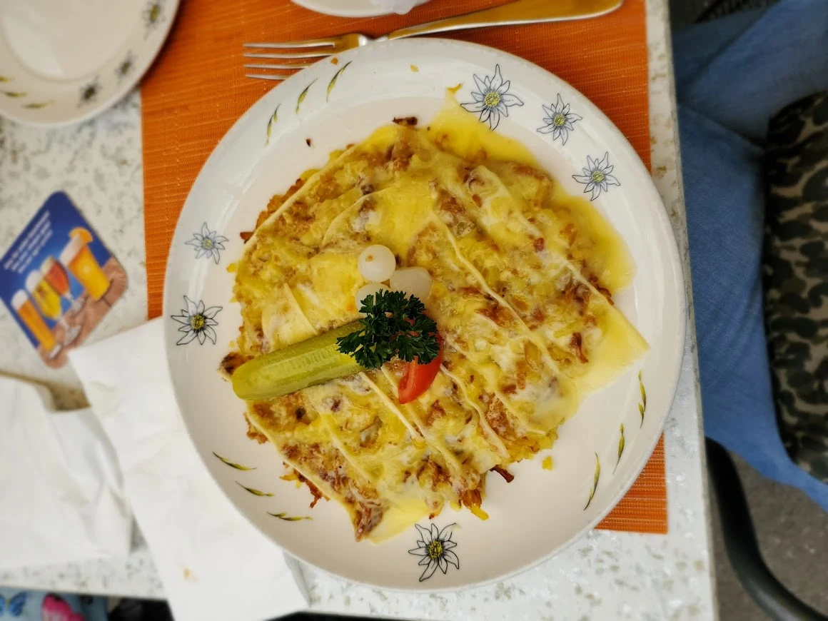 점심은 뮈렌에 내려와서. Rosti (해쉬브라운에 치즈 등 각종 재료를 얹어 만든 음식. 맥주 안주로 딱이다.)와 크림수프 등을 먹었는데, 그새 다시 추워진 날씨에 안성맞춤이었다.