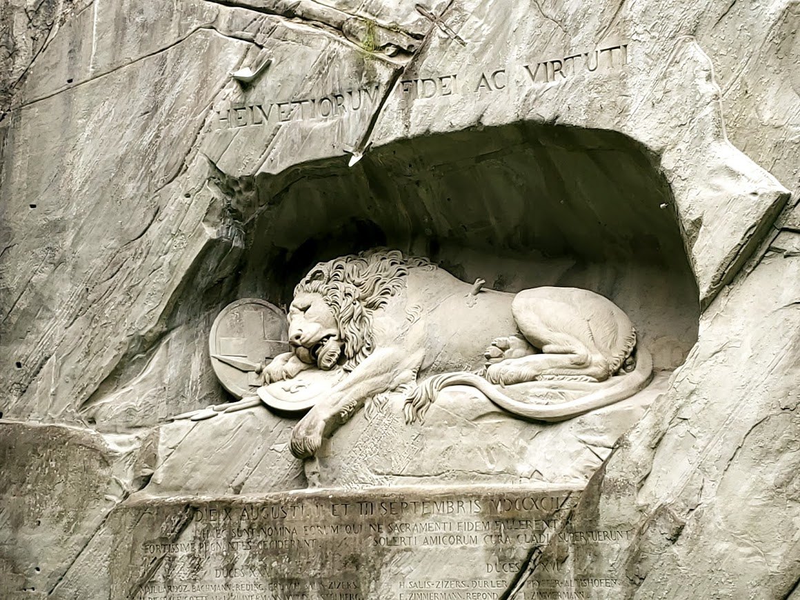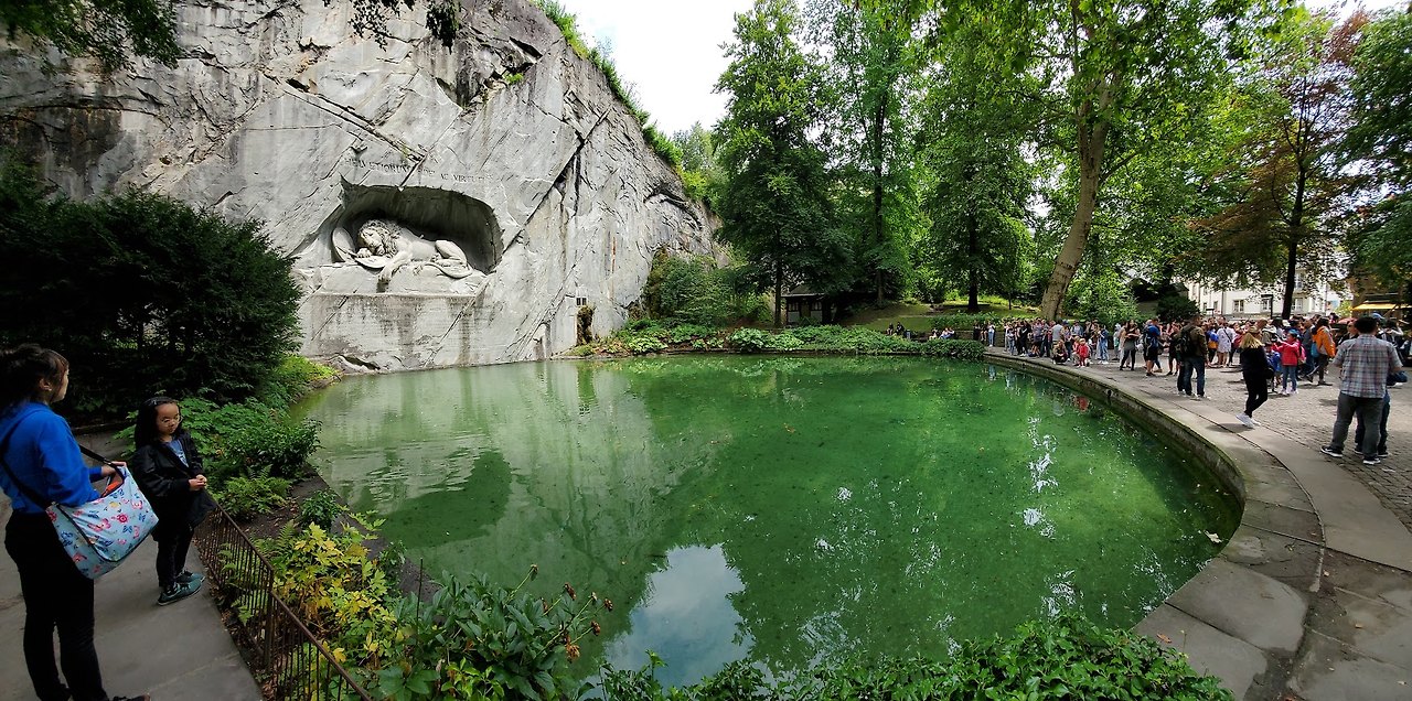 루체른에서 가장 유명한 사자상. 벨기에의 오줌싸개 동상에 이어 실제로 보면 가장 실망스러운 구조물 중에 하나라고 하는데, 개인적으로는 무척 인상 깊었다. 실제로 돌을 깎아 19세기에 완성한 작품으로, 18세기 프랑스 대혁명 당시 부패한 프랑스 국왕 루이 16세를 끝까지 지키다 전멸한 스위스 근위대를 기리는 조각이다.