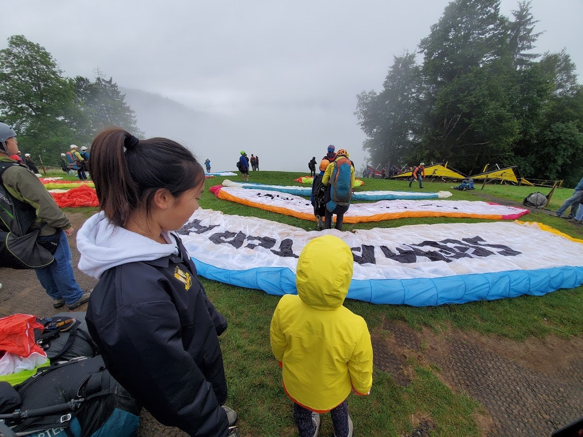 승합차에서 내려 점프 지점까지 5분 정도 산을 타야 했다. 안개가 전설의 고향급으로 자욱했다. 같이 오르는 내 파트너 파일럿에게 이렇게 안개가 꼈는데도 비행이 가능한 건지 살짝 물어봤다. "으음 어려울 것 같아"란 말을 기대했지만, "괜찮다"는 말이 돌아왔다.