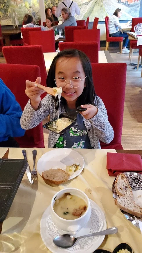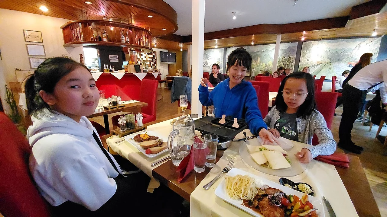 저녁은 퐁듀의 구이판, 라클렛 (Raclette). 원래는 치즈를 불에 직접 구워 벗겨 먹는 건데, 이런 방법도 있었다. 커다란 치즈를 집에 두고 먹는 사람이 줄어들어 나온 현대판 개량형이라고 한다.