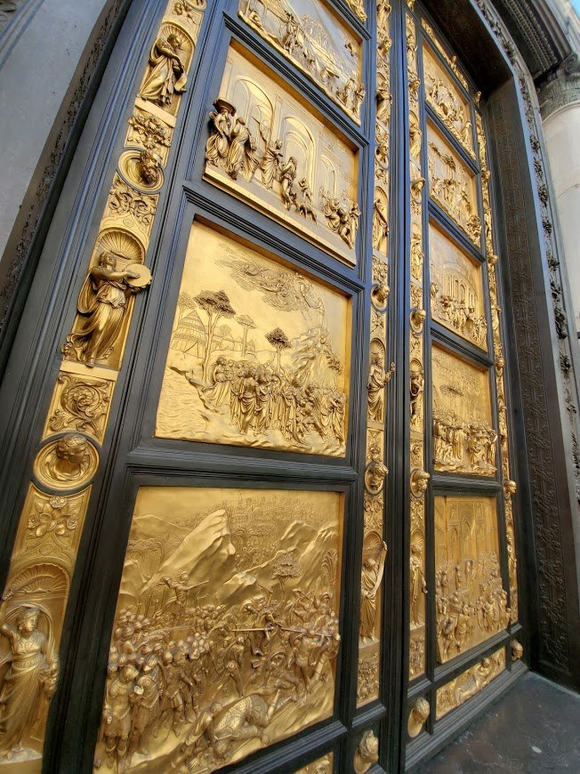 브루넬레스키의 라이벌 기베르티가 만든 천국의 문. 이름 자체는, 이것을 보고 감탄한 미켈란젤로가 '이 문을 열면 천국으로 갈 것 같다'라고 한 데에서 유래했다고 한다. 문을 장식한 조각에 르네상스의 꽃이었던 '원근법'을 적용한 작품이라고 한다. 기베르티는 브루넬레스키의 라이벌이었지만, 브루넬레스키가 두오모 돔을 멋지게 건설해내면서 전반적으로 판정승한 듯싶다. (물론, 예술 및 과학과 건축 그리고 그 외 많은 것들의 문외한인 저의 지극히 개인적인 두오모 돔 투어 경험만을 토대로 한 지극히 편향적인 생각입니다)