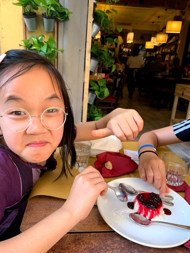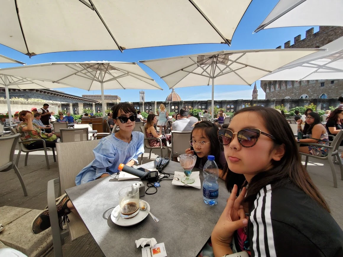 이른 저녁으로는 다시 티본스테이크. 숙소 바로 뒤에 있는 Le Cappelle medicee ristorante enoteca라는 곳이었는데, 왠지 있어 보이는 이름과 좋은 구글 리뷰와는 달리 조금 실망스러웠다. 그냥 너무 더워서 그런 것일 수도 있다. 이 식당에서 가장 훌륭했던 건, 아이들에게 디저트를 공짜로 주겠다는 주인장의 아이디어였다.