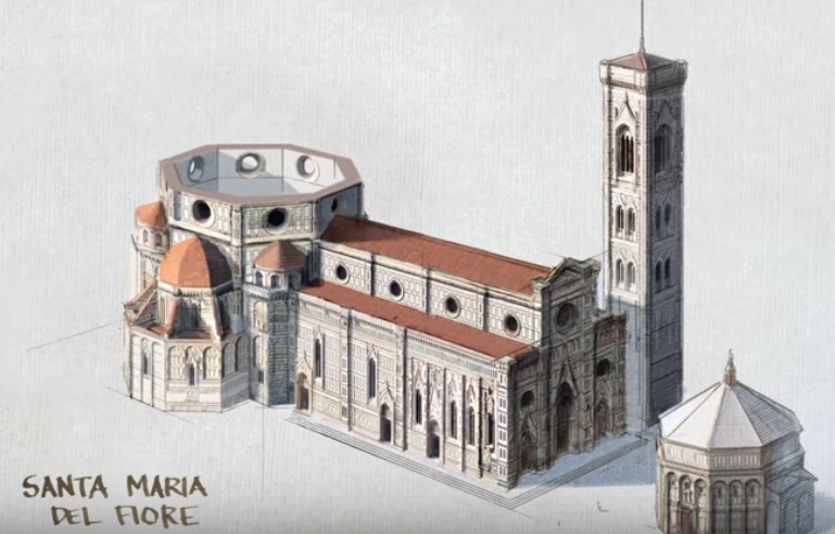 콕 집어 비교하자면, 브루넬레스키 사후에 올린 돔 맨 꼭대기의 랜턴은 무려 34년에 걸쳐 지어졌다고 한다. 가장 어려운 돔 전체는 16년 걸렸는데 꼭대기에 올린 랜턴을 짓는 데에 그 두 배 이상이 걸린 것이다. 바로 이것이 브루넬레스키가 있고 없고의 차이였다고 한다.