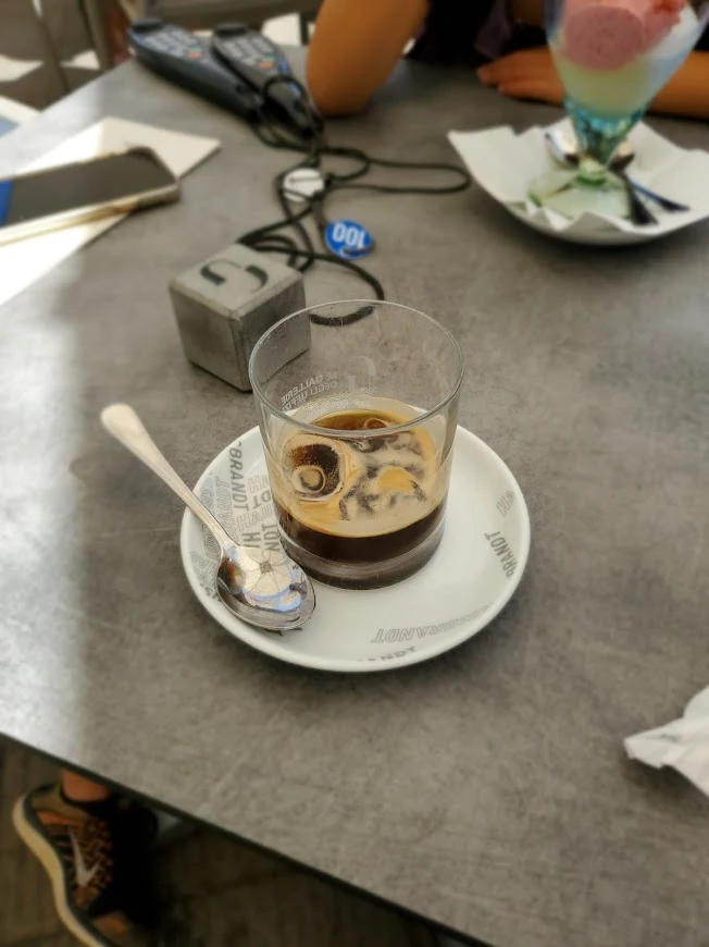 푹푹 찌는 날씨에 아이스커피를 시켰더니 얼음이 커피에 발을 담근 채 나왔다. 차가운 커피를 인정 못한단다, 이태리 사람들은. 너무 덥잖아 그러면, 그럼 젤라토(이탈리아 아이스크림)를 먹어, 그런다고 한다. 즉, 아이스커피에 관해서는 대화가 안 된다. (다른 커피는 환상적이다)