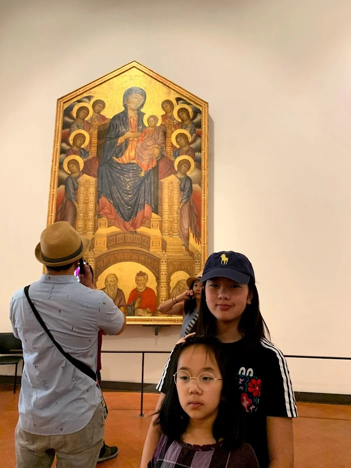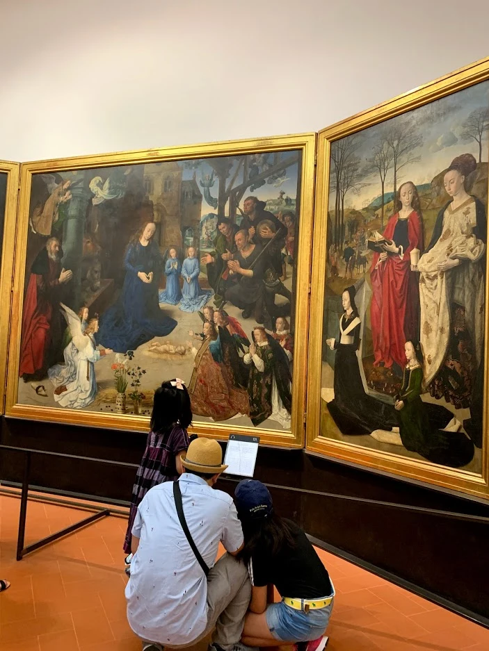 사실 이제 우피치, 하면 떠오르는 그림. 엄마와 딸을 비슷하게 잘도 그렸다는 생각에 자세히 봤더니 마돈나(성모 마리아)와 그녀의 아들 예수였다. Albercht Durer라는 화가의 작품으로 독일 르네상스를 이끈 사람이라고 한다. 당시 성모 마리아 하면 꼭 같이 그렸던 후광이나 면사포 없이 "엄마와 아들"의 관계에 초점을 맞췄다 해서, 아마 개신교의 정신을 담으려 했던 것으로 추측한다고 한다.