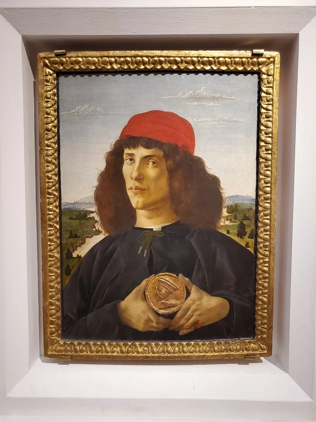 보티첼리가 그린 초상화. 누군지는 알려지지 않았다. 손에 들고 있는 주화는 조각하듯 입체화 한 것이 아주 신선했다.