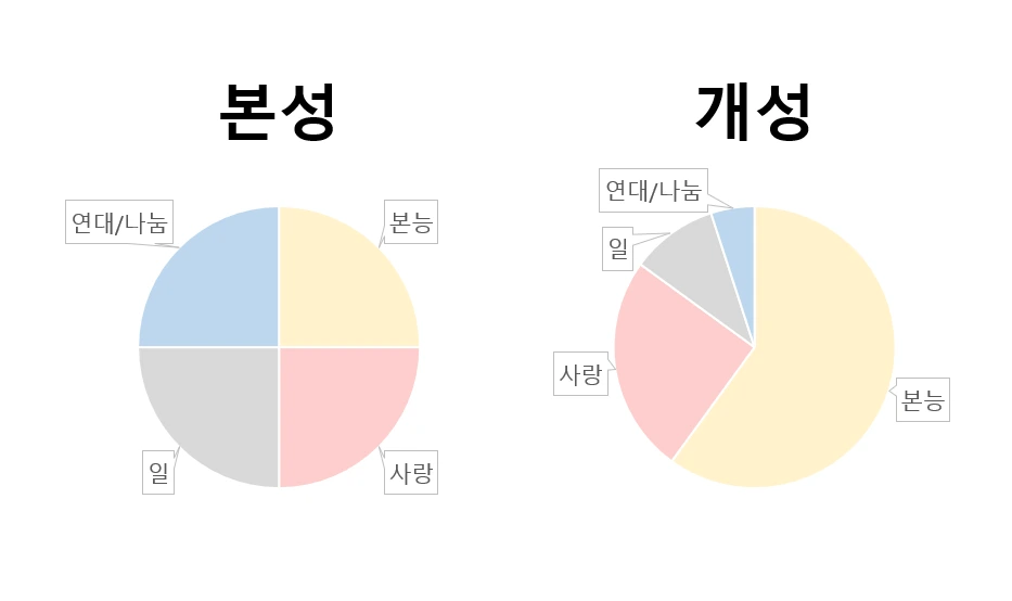 본능: 재밌게 놀고, 맛있는 거 먹고, 편하게 자고,