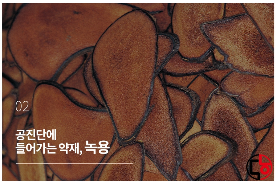 공진단에 사용되고 있는 녹용은 영양분이 가장 밀집되어 있는 최상단 분골을 사용하게 됩니다. (조제업체/한의원에 따라 상이 할 수 있습니다.)