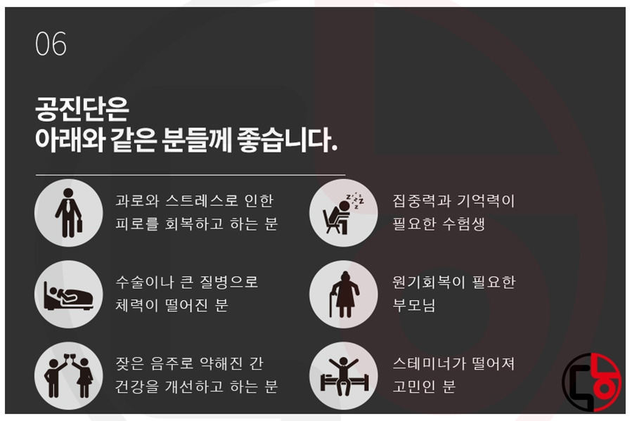 공진단은 다음과 같은 분들께 효과가 좋습니다.