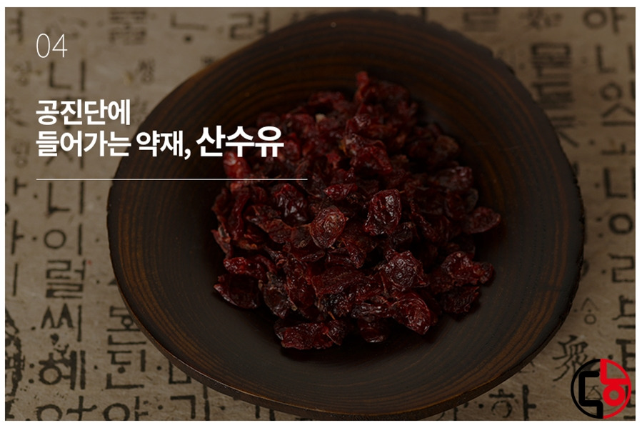 공진단에 이용되는 약재 중 산수유가 있습니다.
