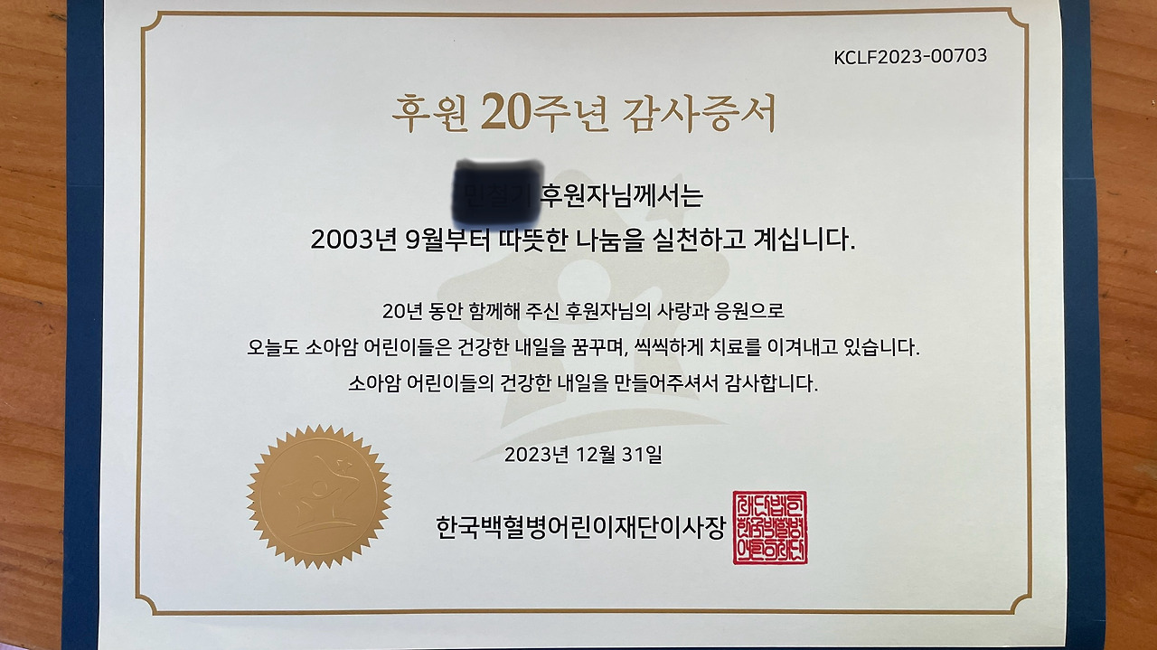 한국 백혈병 어린이 재단의 우편물이었습니다.