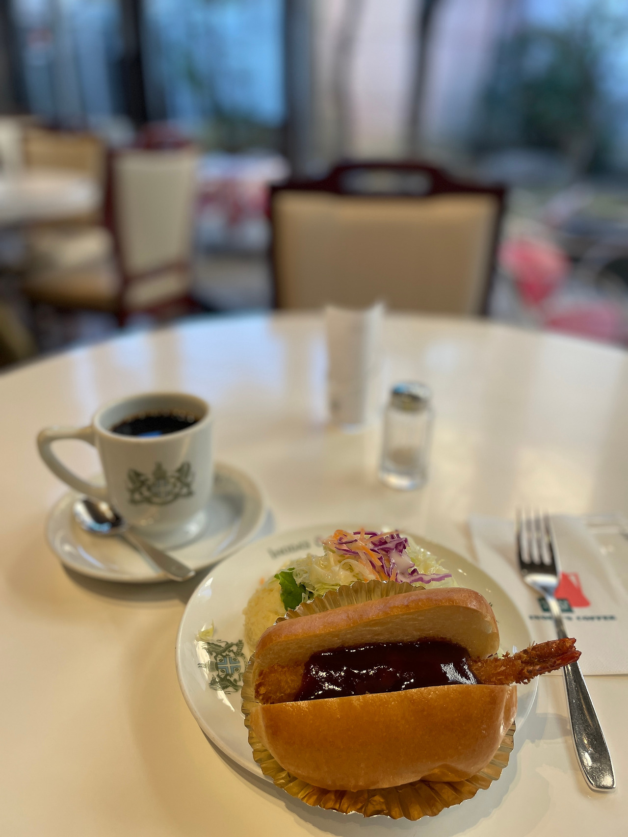 여기서는 모닝 세트를 주문하여 블렌드 커피와 새우튀김샌드위치, 샐러드를 즐겼습니다. 커피는 다크 한 느낌으로 살짝 걱정했지만 생각보다 쓰지 않고 구수하고 은은한 단맛도 느껴져서 기대보다 좋았습니다. 샌드위치와 샐러드도 좋은 재료로 느껴져서 만족스러웠습니다.