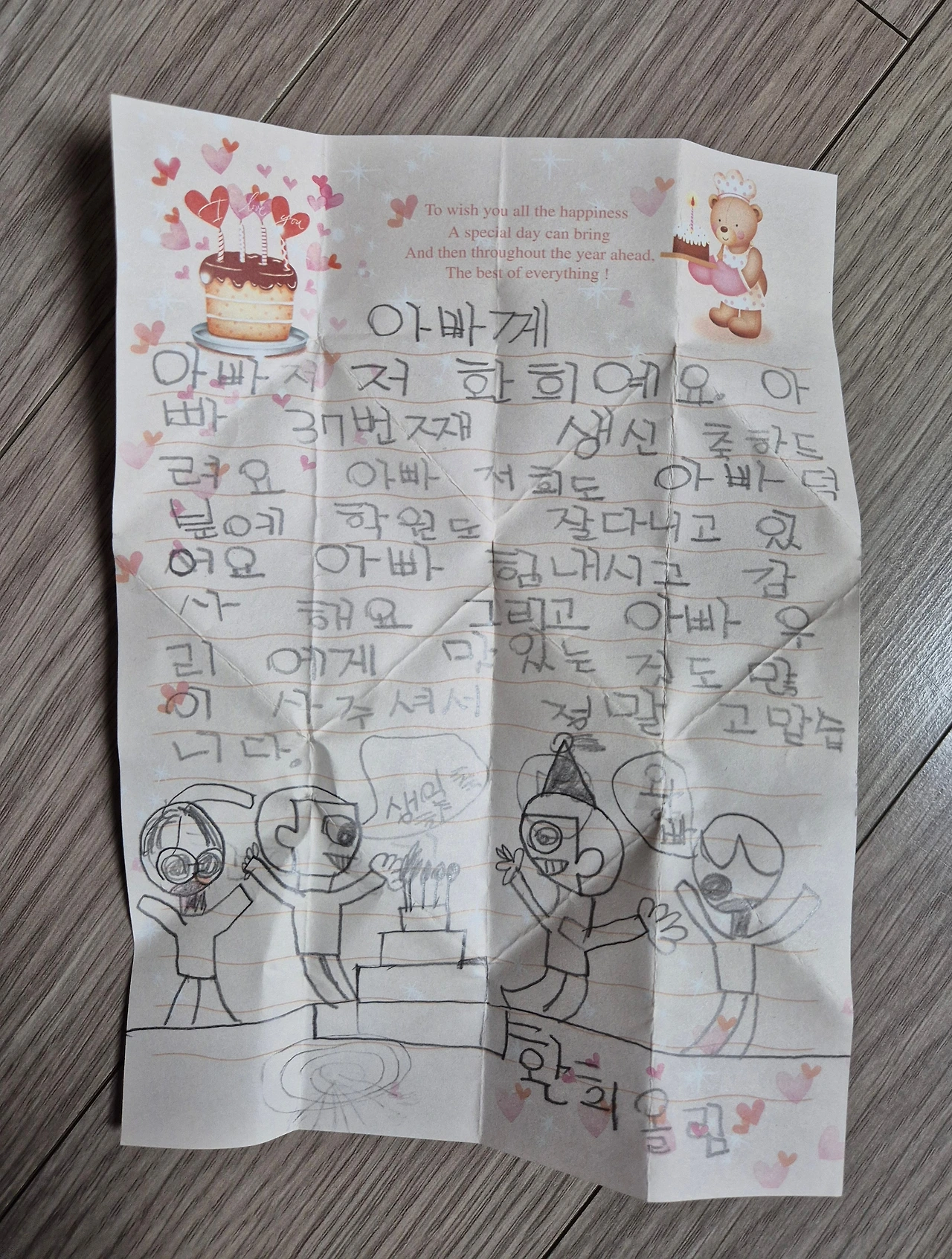 보니 둘째 아이가 8살 때 쓴 편지이다