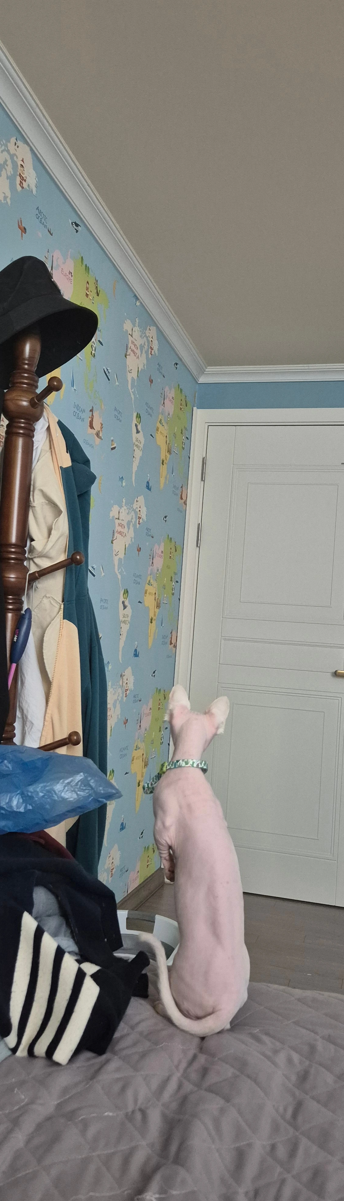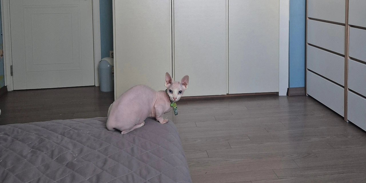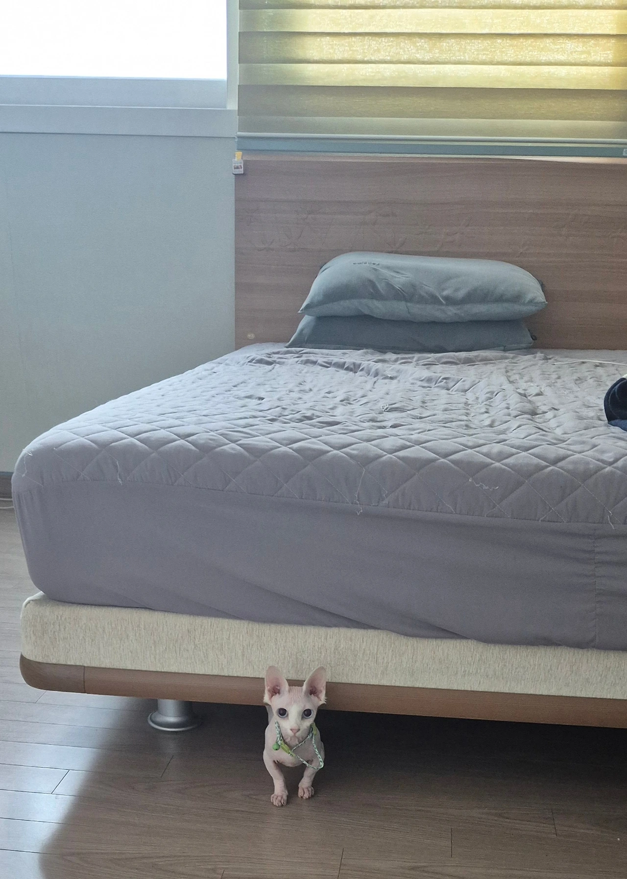 큰 침대 놔두고 왜 모서리 끝자락에 앉아