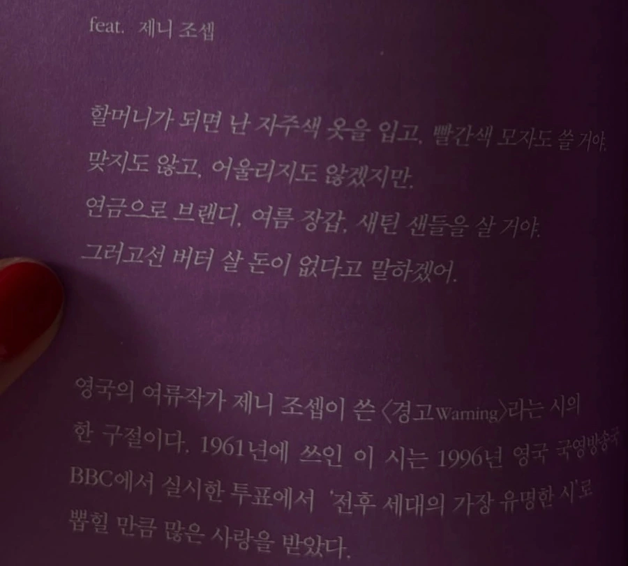 나도 버터 살 돈이 없어도 새틴 샌들을 사는 멋쟁이 할머니인 편이 좋으니까