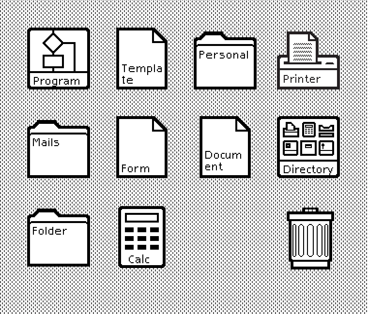 노엄 콕스 (Norm Cox)가 디자인한 제록스 스타(Xerox Star) 8010 아이콘(1981)