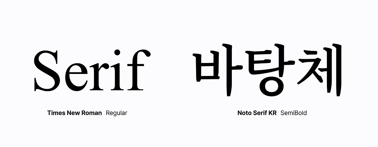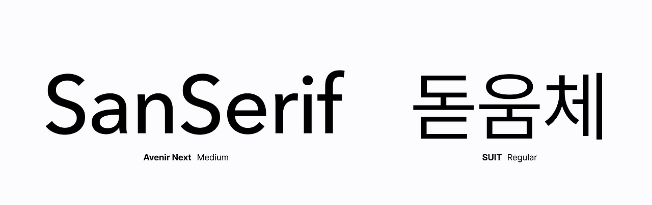 앱 전반적으로 하나의 폰트를 써야 하지만 두 개의 폰트를 쓴다면 비슷한 계열의 폰트보다 완전히 다른 계열의 폰트를 사용해야 한다.