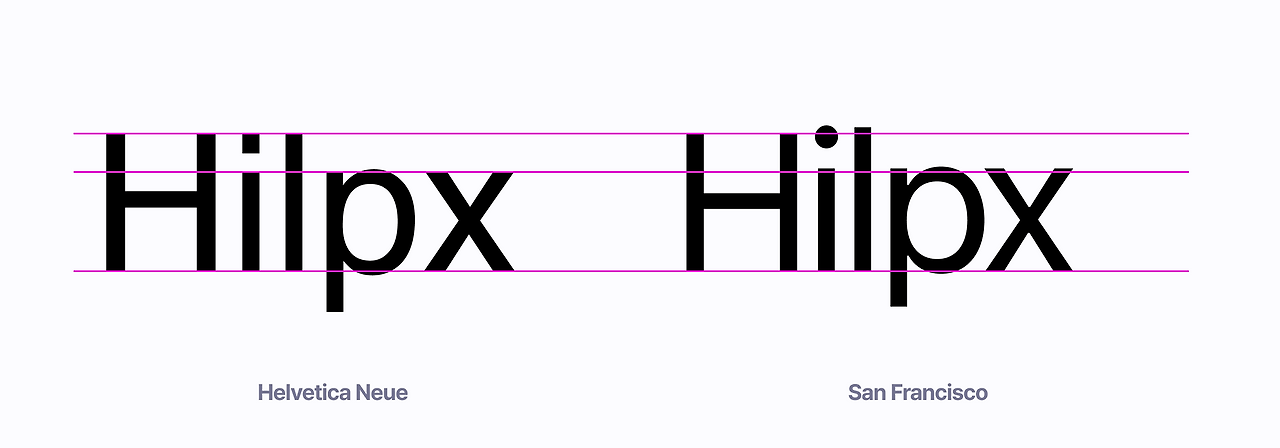 화면용 글꼴 샌프란시스코의 소문자 i, l 등의 크기(x-height)가 더 길어 작은 화면에서 구분이 잘된다.