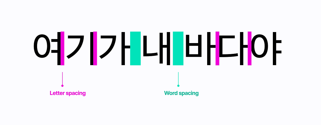 글자의 간격을 균일하게 늘리거나 줄인다. 글자 사이 값을 조절하여 어려움 없이 읽을 수 있도록 하는 것이며 이를 트래킹이라 한다.