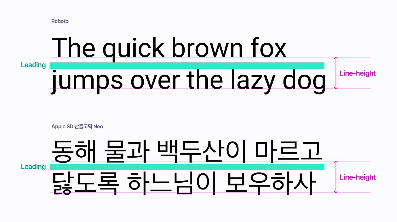 시스템 아이콘이나 버튼 같은 인터페이스 요소의 높이를 16, 24, 32, 같이 4의 배수(또는 8의 배수)로 디자인하듯이 행간도 4의 배수로 설정하는 것이 일반적이다.