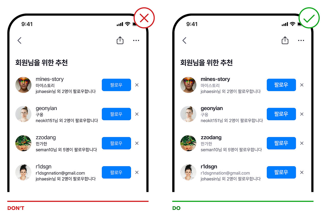 모바일과 웹 환경에서는 사용자가 최소한의 노력으로 정보를 빠르게 찾기 위해 스크롤하면서 F자형으로 스캔하며 읽는다. 따라서 간결하고 훑어보기 쉬운 타이포그래피를 통해 정보를 빠르게 이해할 수 있도록 디자인해야 한다. 타이포그래피 계층 Typography Hierarchy을 적절하게 활용하여 사용자들이 인터페이스를 빠르게 스캔하고 필요한 정보에 접근할 수 있도록 도울 수 있다.