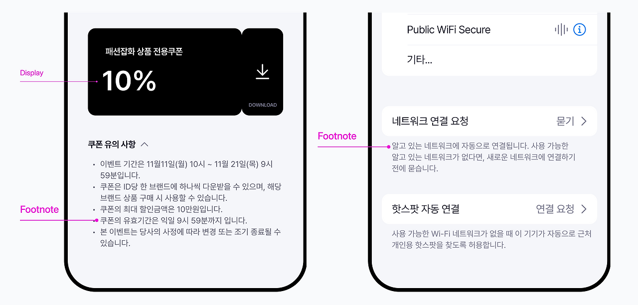 인터페이스에서는 부가적인 설명이 필요한 경우에 사용한다.