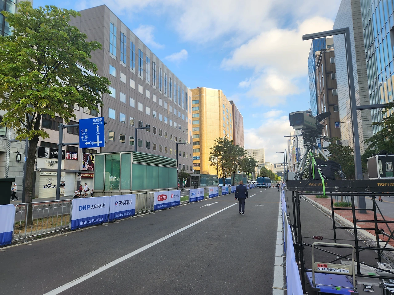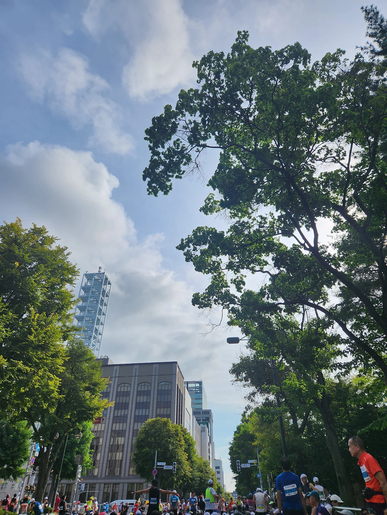 삿포로의 기온이 33도를 넘는다. 20도 근처의 선선한 가을날씨라고 했는데. 이건 뭐 아침 기온도 30도가 넘는다. 대회 전날 배번을 수령하려 엑스포장에 가는 길에는 34도까지. 태양이 강한 낮시간에는 주민들도 몇 보이지 않는다. ‘이라면 나가린데.. ‘ 밤을 새워도 끊기지 않는 걱정을 붙잡고 출발선에 섰다. 온도는 30도. 4시간 뒤에 비가 예보되어 있긴 했다. 비를 맞는 게 좋은 걸까. 그전에 대회를 마치는 게 좋은 걸까. 어차피 겪어보지 않으면 알 수 없을 고민을 하며 스타트. 삿포로 시내 한가운데를 지나는 기분이 나쁘진 않다. 사회자가 외치는 일본말 사이로, 도쿄 올림픽 레가시 코스 이런 단어가 들린다. 그래 나는 킵초게가 뛰었던 그 길을 뛰는 거지. 간바레!! 하지만 속도는 나지 않는다. 고온 때문인지 10킬로 정도부터 포기하는 사람들이 나오기 시작했고, 쉬지 않고 계속해서 달리는 것은 무리라는 생각이 들었다. 5~6분을 달리고 1분 내외를 걷는 런-워크-런 주법으로 전략을 변경했다. 급수대는 생존경쟁의 현장 같았다. 다들 몇 컵씩 물을 마시고도 열이 식지 않아 머리와 몸에 물을 뿌리고 있었다. 대회 후기들을 살펴보니, 뒤에 오신 분들은 이미 텅텅 비어버린 급수대를 마주하기도 했다고 한다. 중간중간 과일과 얼음물을 가지고 나와 응원해 주신 시민들 덕분에 겨우 대회가 진행될 수 있었던 것 같다. 역시 마라톤은 해외에서.