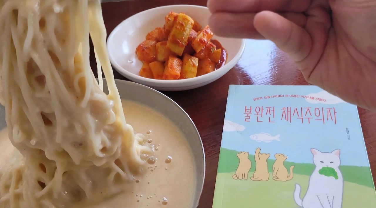 "콩국수도 천천히 먹어야 합니다. 의외로 목에 잘 걸려요"