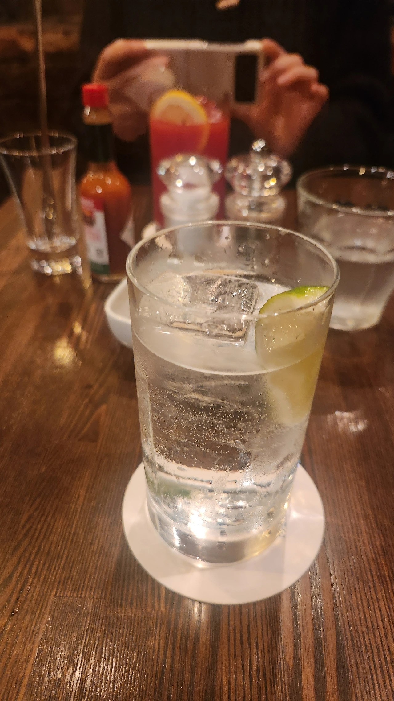 ‘DUG'에 들어가 보드카 토닉을 두 잔씩 마셨다.