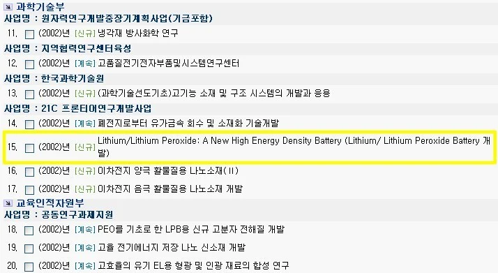 15년 정도 전에도 몇 군데의 정출연이 합쳐서 수백억 원에 가까운 국가 R&D 자금으로 수행한 연구 주제도 바로 ’리튬금속폴리머 이차전지'였었다.
