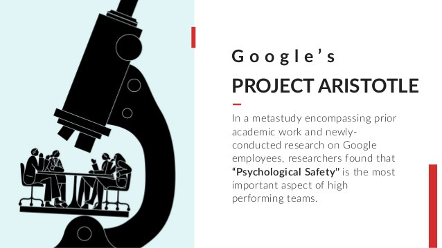아리스토텔레스 프로젝트는 이 두 가지 행동은 성과를 높이는 팀의 공통된 문화 규범이며 이것을 심리적 안정감 (Psychological Safety)에서 나오는 행동이라고 정의했다.