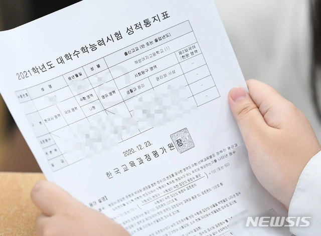 얼마 전 딸의 재수생으로 결과인 수능성적표가 통지되었다.